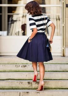 I et slikt skjørt blir jentens silhuett mer slank, ettersom midjen blir vektlagt, og beina er visuelt forlenget. A-line skjørt er ofte komplementert med folder og ruffles. Du finner knapt patchelommer på slike skjørt, men i mange modeller er det sidelommer eller skjulte lommer.
