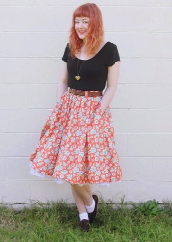 Hvis du utvider et slikt skjørt, får du en sirkel som det er et hull i livet. Skjørt av denne stilen er sydd begge fra ett snitt, og flere stoffstykker blir sydd sammen. Oftest er slike skjørt på et elastisk bånd, men det er modeller med glidelås og belte. Lommer på slike skjørt kan være lommer, lommer og sømmer.