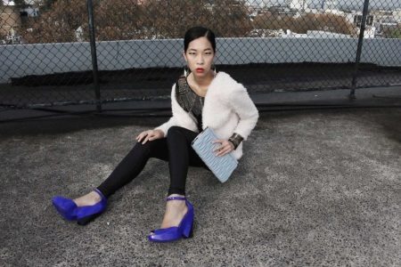 Tak więc czarny garnitur do spodni w stylu biznesowym skutecznie osłania gumowe sandały z czerwonymi lub cielistymi obcasami.