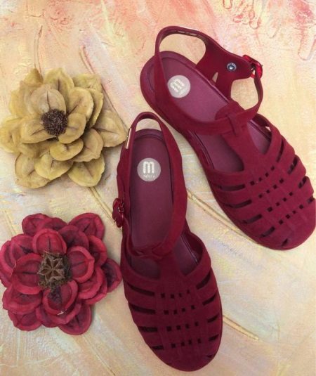 Gumowe sandały są prezentowane w różnych modelach: na płaskiej podeszwie lub na pięcie, z otwartym lub zamkniętym nosem.