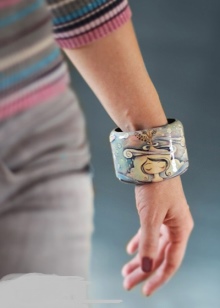 - Koncentrując się na szczegółach. Szeroka bransoletka doskonale podkreśla kruchość i elegancję nadgarstka.