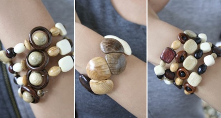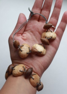 Drewno jest bezpretensjonalnym materiałem; needlewomen może z łatwością pracować z nim dowolną techniką. Dlatego przy produkcji bransoletek drewniany blank jest łączony z wieloma innymi materiałami.