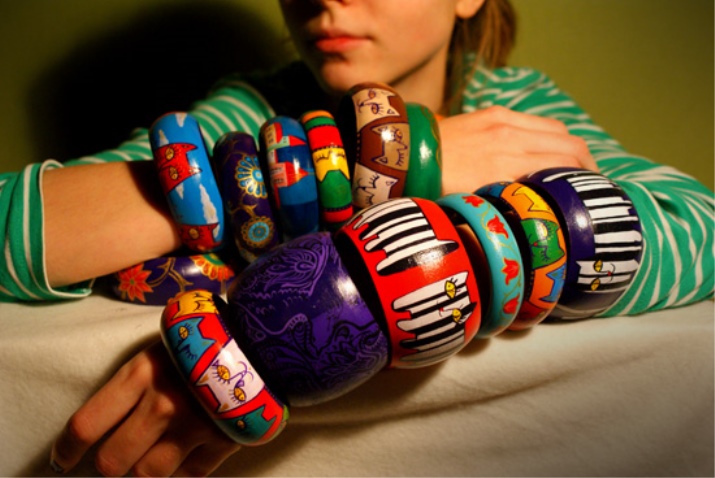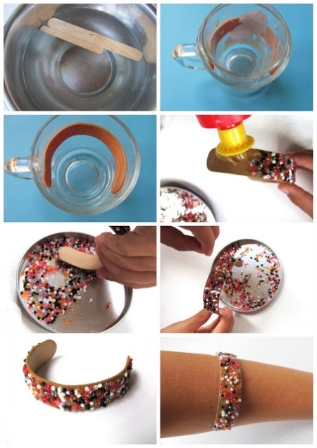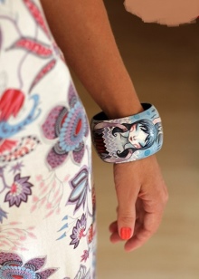 Unikalna dekoracja, którą możesz sam stworzyć. Aby to zrobić, potrzebujesz drewnianej zszywki medycznej lub zwykłego patyczka do lodów. Obrabiany przedmiot moczy się w wodzie przez 24 godziny, aby mógł się zgiąć. Następnie umieszcza się je wewnątrz szkła, aby nabrały zaokrąglonego kształtu, i pozostawia na jeden dzień. Potem zaczyna się zabawa - nieskończone możliwości dekoracji przyszłej bransoletki z modą.