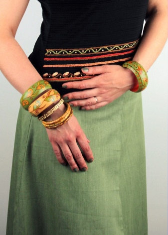 Lista ubrań, z którymi połączone są drewniane bransoletki, jest niewielka. Ale najlepiej wyglądają z rzeczami wykonanymi z naturalnych materiałów - bawełny, lnu, wełny.
