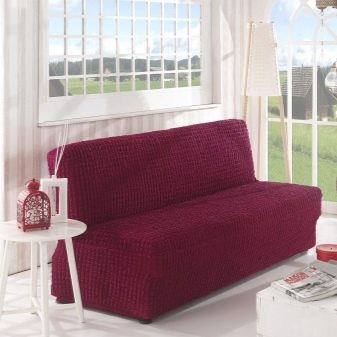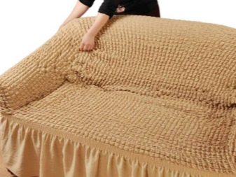 Dość uniwersalna powłoka z reguły jest łączona z innymi materiałami obecnymi w pomieszczeniu. Z powodzeniem radzi sobie z ochroną mebli przed pazurami zwierząt, nakłuciami lub wpływami mechanicznymi.Możliwe będzie zamówienie pokrowca na dowolny projekt sofy, od prostego i czteromiejscowego po miniaturowy narożnik, odpowiedni tylko dla dwóch osób. Podczas pracy pokrowiec nie zsuwa się z sofy, ale w razie potrzeby można go łatwo zdjąć w praniu. Względne wady tego przedmiotu obejmują jego zwiększony koszt.