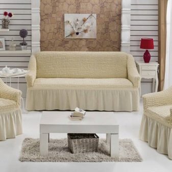 Należy również dodać, że w przypadku sof bezpośrednich należy kupić zarówno produkty uniwersalne, jak i symetryczne. W przypadku sof z podłokietnikami lepiej jest zamówić pokrowiec euro w pracowni, niż przygotować się, ponieważ kształt i rozmiar są często niestandardowe. Modele z dolną falbanką są dość szerokie i są dodatkowo mocowane za pomocą elastycznych taśm lub opasek.