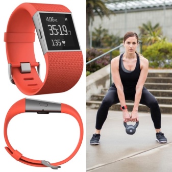 Fitbit Surge to najdroższy model powyższego, ponieważ zestaw jego funkcji pozwala uznać go za „inteligentny” zegarek. Oprócz funkcji pomiaru tętna, liczby kroków, przebytej odległości, prędkości ruchu, wydatku energii, ilości spalonego tłuszczu, czasu aktywności i śledzenia snu, to urządzenie wyświetla również informacje o połączeniach przychodzących i wiadomościach.