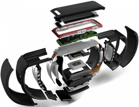 Większość współczesnych urządzeń jest obecnie wyposażona w 3-osiowy akcelerometr, którego zadaniem jest śledzenie ruchu i przyspieszenia urządzenia w trzech kierunkach. Akcelerometr składa się z dwóch małych tablic elektrycznych z ładunkiem elektrycznym, między nimi zainstalowana jest przeciwwaga. Jeśli nie ma ruchu, przeciwwaga znajduje się pośrodku. Podczas ruchu przeciwwaga styka się z płytami, tworząc trójwymiarowy obraz ruchu. Dwie wbudowane elektrody służą do określania częstości akcji serca.