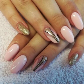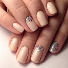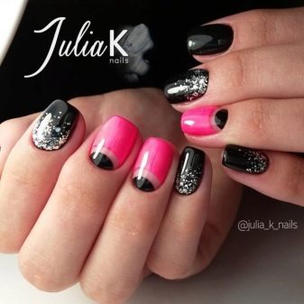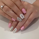 Tworząc manicure na specjalne okazje, często używają kombinacji różu ze srebrem lub złotem, prezentowanej głównie w postaci lakieru hybrydowego z połyskiem. Róż powinien być jasny. Taki manicure wygląda bardzo elegancko, a jednocześnie nie jest wyzywająco. Daje każdy uroczysty obraz dodatkowej elegancji.