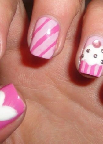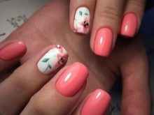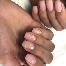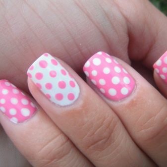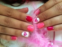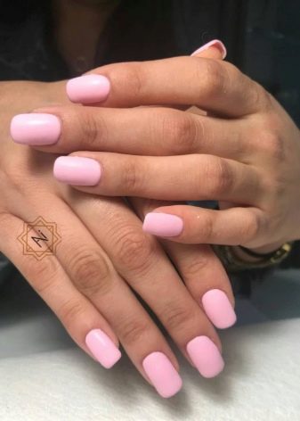 Jeśli płytka paznokcia jest krótka, możesz bezpiecznie wybrać dowolny kolor z różowej palety, aby uzyskać jednolitą powłokę. Ale, podobnie jak w pierwszym przypadku, możesz bezpiecznie eksperymentować z nadrukami i wzorami na paznokciach.