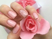 W przypadku różowego lakieru hybrydowego najczęstszą opcją są pąki, które stają się doskonałym składnikiem manicure ślubnego.