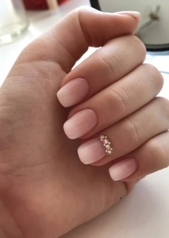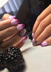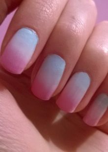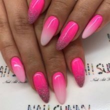 - Przez długi czas gradient jest ulubioną opcją zarówno dla delikatnego, jak i bogatego manicure z różowymi odcieniami. Zgodnie z tą technologią, użycie lakieru żelowego na każdej płytce paznokcia zapewnia płynne przejście kolorów od najjaśniejszego do najciemniejszego odcienia. Zwykle stosuje się do tego trzy kolory.