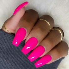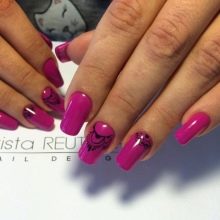 - Dla ekstrawaganckich pań najbardziej odpowiedni będzie odcień gorący róż. Zasadniczo jest to uzupełniający się kolor w zestawie do manicure. Dzięki niemu rysunki i dodatkowe pociągnięcia są tworzone na płytce paznokcia. Ale miłośnicy odważnych eksperymentów często tworzą prosty manicure, preferując kolor fuksji.