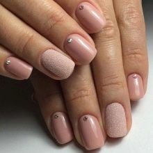 - Często panie wolą efektowny manicure z kryształkami. Te błyszczące elementy znajdują się głównie u podstawy płytki paznokcia w ilości jednego lub więcej kawałków. Wybrane są głównie jasne kolory, ale możesz również wybrać kolorowe dżetów, jeśli odpowiednio uzupełniają podstawowy odcień.