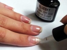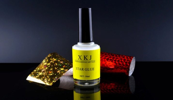 Wysokiej jakości łącznik jest sprzedawany swobodnie w sklepach dla mistrzów zdobienia paznokci. Wygląda jak tuba ze zwykłym białym lakierem z wygodnym pędzlem do aplikacji jednolitej lub punktowej. Jego cena jest całkiem do zaakceptowania, a jego użycie jest proste. Nie potrzebuje specjalnych urządzeń do suszenia i mocuje bezpośrednio w powietrzu. Po stwardnieniu kompozycja z białawego przekształca się w przezroczysty. Ten wskaźnik informuje, że czas przykleić folię.