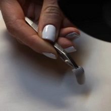 - Popychacz z gumową lub silikonową miękką końcówką do wyrównywania folii na powierzchni paznokcia.