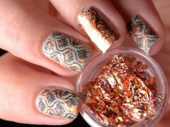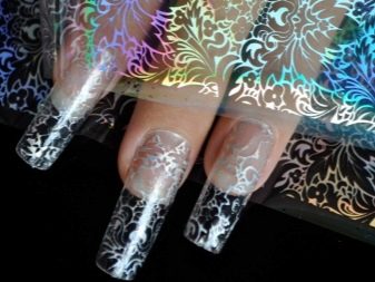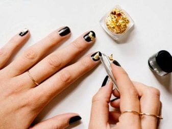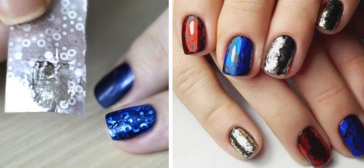 Ten lub inny rodzaj folii jest wybierany zgodnie z umiejętnościami wykonywania niezależnego manicure i cechami techniki, projekt wykonanego rysunku. Często paznokcie w folii są uzupełniane indywidualnymi elementami dekoracyjnymi lub wykorzystują je jako integralną część bardziej złożonego projektu, który łączy różne techniki. Jednocześnie manicure z metalową folią wygląda spektakularnie i ekstrawagancko w wykonaniu solo.