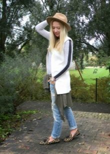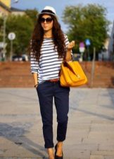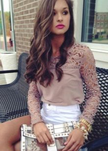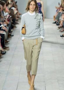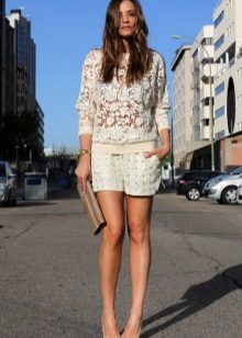 Spodenki średniej długości o klasycznym kroju ze strzałkami można łączyć tylko z obcisłymi swetrami wykonanymi z cienkiego materiału. Jeśli wolisz skrócony model, wybierz elegancki top lub podkoszulek.
