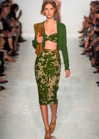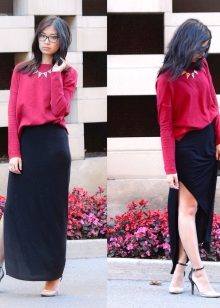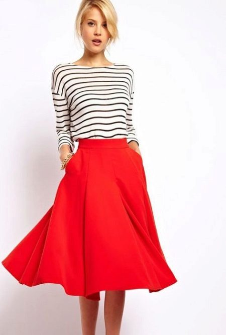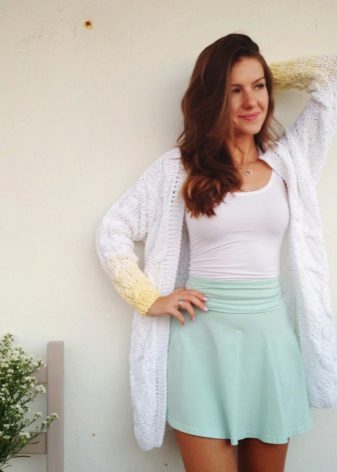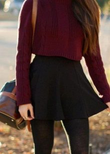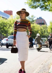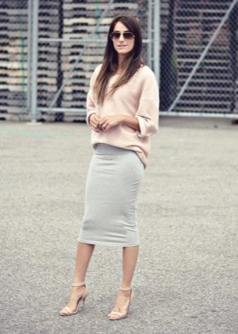 Aby uniknąć nadmiernej objętości przy cięciu spódnicy na słońcu lub na pół słońca, lepiej jest nosić obcisły model swetra z cienkiego materiału, który powinien być schowany w środku. Modele z wąską spódnicą lub krótka mini spódniczka pozwalają na stosowanie swetrów wykonanych z grubej dzianiny z lekko wydłużonymi modelami, które podkreślą linię bioder.