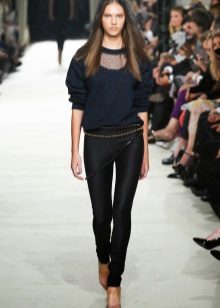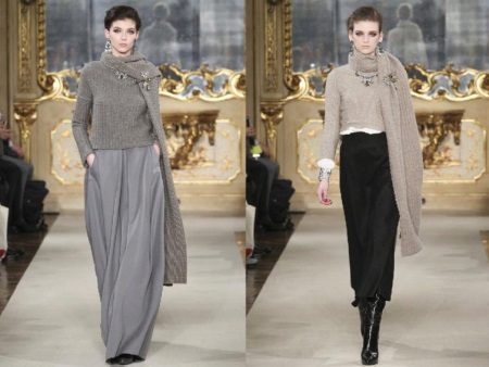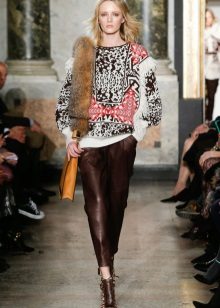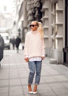 Jeśli wybrałeś odpowiedni model swetra, spodnie można wybrać w luźnym lub szerokim kroju, dzięki czemu obraz będzie harmonijny i lekki.