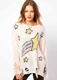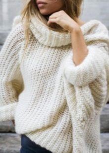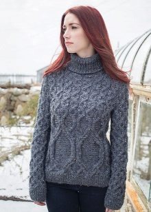 Bardzo często takie swetry są wykonane w postaci wydłużonego modelu i mogą być używane przez smukłe dziewczyny jako obcisła wełniana mini-sukienka.