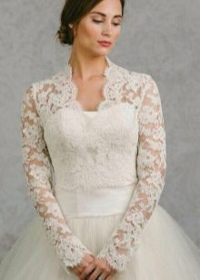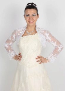 Również skrócona kurtka jak bolerko w kolorze sukienki jest ulubionym dodatkiem dla narzeczonych.