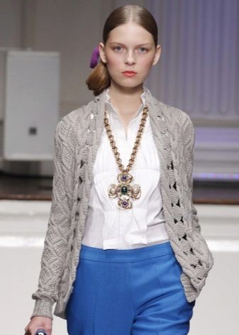 Łącząc kurtkę z długim rękawem z dowolnym modelem spodni, należy wziąć pod uwagę styl samego produktu. Jeśli wolisz ciepły sweter z dzianiny wykonany z grubej wełnianej tkaniny, wybierz wąski klasyczny model spodni lub spodnie o prostym kroju, aby nie tworzyć nadmiernej objętości.
