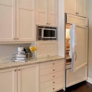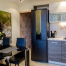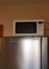 - Możesz dodatkowo zaoszczędzić miejsce, umieszczając lodówkę przy drzwiach i umieszczając kuchenkę mikrofalową pasującą do Twojego stylu i koloru.