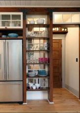 - urządzenie stanowiące część zestawu słuchawkowego narożnego może służyć nie tylko do przechowywania żywności, ale także do dalszego podziału kuchni na jadalnię i miejsce do pracy; więc możesz uporządkować przestrzeń, jeśli umieścisz urządzenie przy wejściu, ale pamiętaj tylko, że urządzenie znajdujące się w pobliżu drzwi kuchennych nie powinno dotykać jego powierzchni;