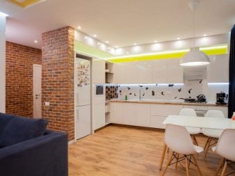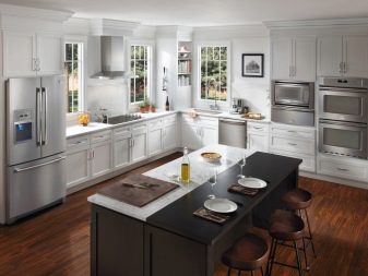 - jeśli nadal decydujesz się na wolnostojący projekt, możesz go umieścić w odległym rogu kuchni naprzeciwko całego zestawu słuchawkowego.