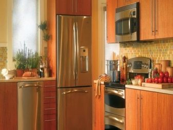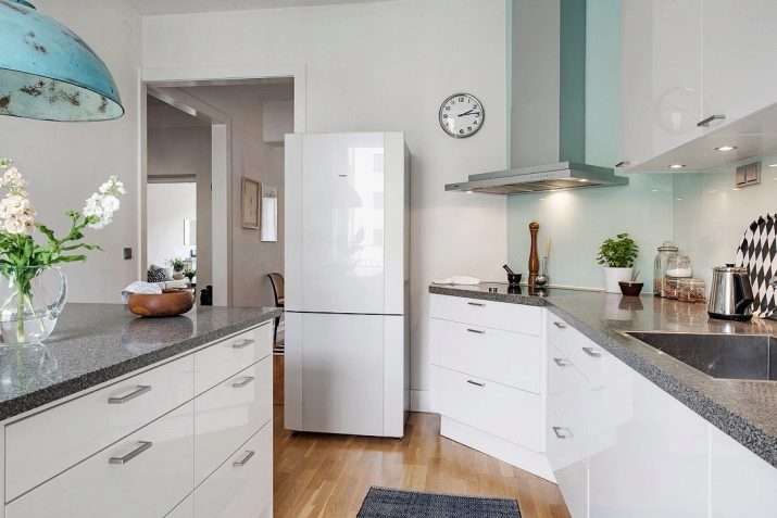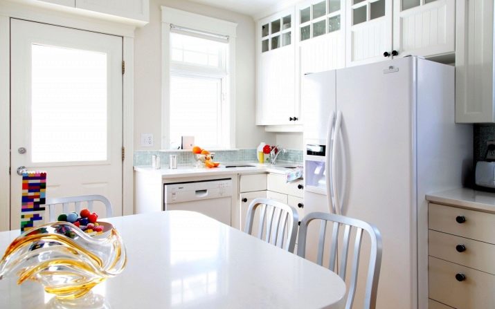 - jeśli właściciel kuchni jest praworęczny, wówczas najwygodniejszą opcją będzie umieszczenie lodówki po lewej stronie zestawu słuchawkowego, a jeśli osoba leworęczna, wręcz przeciwnie, będzie po prawej stronie;