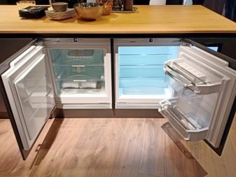 - Istnieją również mini-modele dla niższych poziomów, które rozciągają się. Te projekty nie są wyposażone w komorę zamrażania, ale wyglądają bardzo kreatywnie i kompaktowo. Na końcach tych urządzeń mogą znajdować się specjalne otwory wentylacyjne, zgodnie z miejscem, w którym należy wybrać miejsce instalacji wysuwanego urządzenia.