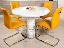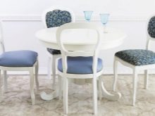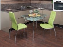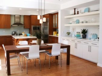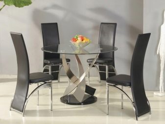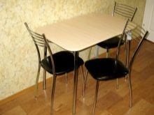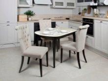 Cóż, jeśli do jedzenia jest wydzielony oddzielny pokój - jadalnia. Można w nim postawić duży stół z krzesłami. Ale jeśli stół musi zmieścić się w kuchni, a nawet na małym obszarze - musisz pomyśleć o kompaktowym ustawieniu. Nawet jeśli jest dużo miejsca, nie należy wystawiać wszystkich dostępnych krzeseł - nie zawsze jest to właściwe. W małej kuchni szczególnie ważne jest zwrócenie uwagi na wszystkie wymiary mebli. Najwygodniejszą opcją w tym przypadku będą produkty ze składanym tyłem, które później można po prostu ukryć pod stołem. Lub w skrajnych przypadkach część krzeseł można zastąpić stołkami.