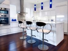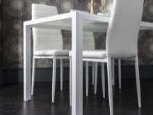 Dla konserwatystów minimalizm będzie najlepszym rozwiązaniem z jasnością linii i ostrością konturów. W pewnym sensie takie ustawienie może stać się filozofią życia. Jednocześnie nie powinieneś myśleć, że takie wnętrze może być nudne. Nawet w jednym kolorze kuchnia może wydawać się atrakcyjna ze względu na szczegóły. Biel można nazwać uniwersalnym kolorem, w każdej sytuacji wygląda uroczyście, ale jednocześnie dyskretnie. Aby rozjaśnić ciężkie meble, wybierz opcje z przelotowym, cienkim oparciem. W tym samym celu do kuchni nadają się przezroczyste plastikowe krzesła.