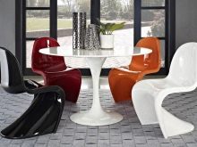 W krzesłach z plastikowymi siedzeniami i oparciem główny nacisk kładziony jest na nietypowy kształt. Tutaj możesz zobaczyć najbardziej ekstremalne zakręty i niewyobrażalne kształty. Meble wykonane z tworzywa sztucznego mogą być gładkie lub wytłaczane w dotyku (żebrowane, szorstkie itp.). Wśród kolorów można wśród nich znaleźć wszystko - plastik można pomalować na prawie wszystkie znane kolory.