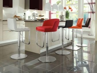 Do stołków barowych dodaje się kolejny element - podnóżek, ponieważ nie sięgają one podłogi, co może być niewygodne. Sytuacja przy barze jest bardziej nieformalna, dlatego krzesła można wyposażyć w mechanizmy podnoszące i obracające siedzisko. Mechanizmy są najczęściej instalowane w obrotowych krzesłach z jedną nogą. Ale są też modele przypominające zwykłą jadalnię - z czterema wysokimi podporami.