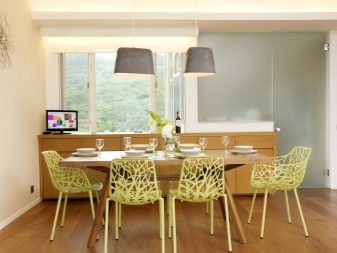 Zwykle liczba krzeseł zależy od liczby członków rodziny. I nawet w uroczystej jadalni nie stawiaj więcej niż sześć. Przechowywanie nadmiaru mebli (na wypadek przybycia gości) powinno być również zwarte.