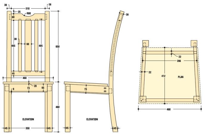 Krzesło do jadalni z reguły ma wysokie oparcie (do 40 cm), jego kształt może być prostokątny, trapezowy lub zaokrąglony. Siedzisko ma kształt kwadratu lub koła. Można znaleźć zarówno proste, jak i zakrzywione siedzenia i oparcia. Odbywa się to nie tylko dla urody, ale także dla wygody. Oczywiście nie można spotkać ortopedycznych krzeseł kuchennych, ponieważ nie spędzają tyle czasu, ale ergonomiczne cechy nie będą zbędne.