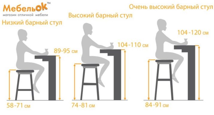 Wysokość krzesła powinna być odpowiednia do jego celu. W tym przypadku uważa się wysokość od podłogi do siedzenia - zwykle wynosi ona 45 cm, a średnie parametry wysokości całego produktu (wraz z oparciem) wynoszą około 90 cm. Liczba ta może być mniejsza lub większa, jeśli oparcie lub siedzisko ma nachylenie. Takie wymiary są dość odpowiednie dla przeciętnego stołu jadalnego (72 cm). W przypadku stołków barowych wszystko nie jest tak jasne. Ich wysokość do siedziska może wynosić 58 lub 91 cm - wszystko zależy od wielkości stojaka. W końcu dolna część ciała powinna wygodnie do niej pasować, nawet jeśli postawisz stopę na stopie.