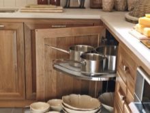 Aby wszystkie części zestawu kuchennego miały solidny wygląd, należy wziąć pod uwagę kształt i wymiary przy ich wyborze. Pomimo tego, że standard produktu to 90x61x85 cm, specjaliści mogą produkować meble ściśle według życzeń klienta. Aby poprawnie obliczyć wysokość szafki, należy wziąć pod uwagę wzrost gospodyni, kąt zgiętego ramienia, który podczas gotowania nie powinien być mniejszy niż 90 stopni. Szerokość wąskich i wysokich kątowych konstrukcji wykonywanych na zamówienie może wynosić 40 cm.