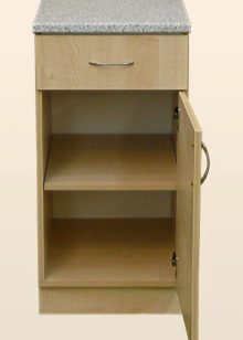 Klasyczny produkt do przyborów kuchennych może służyć do przechowywania naczyń, drobnego sprzętu gospodarstwa domowego i płatków śniadaniowych. Ta konstrukcja jest wyposażona w dwie lub trzy półki, a przednią stronę zamykają drzwi wahadłowe lub przesuwne.