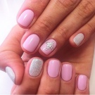 Paznokcie z tłuczonego szkła w kolorze różowym również wyglądają bardzo oryginalnie i jasno.