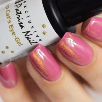 Oryginalny design będzie miał efekt „Kocie oko”, ze specjalnym paskiem pośrodku lub przekątnej gwoździa. Aby to zrobić, potrzebujesz specjalnego magnesu.