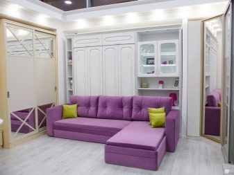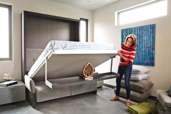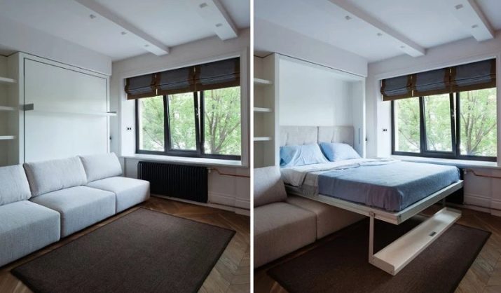 Wybierając jeden lub inny model transformatora rozkładanej sofy do aranżacji małego pokoju, należy wziąć pod uwagę wiele czynników. Kluczem do tego jest mechanizm transformacji.Każdy system wymaga pewna ilość miejsca na układ. Opcje podnoszenia uważa się za wygodniejsze i praktyczne. Ich podpory nie rysują powierzchni podłogi.
