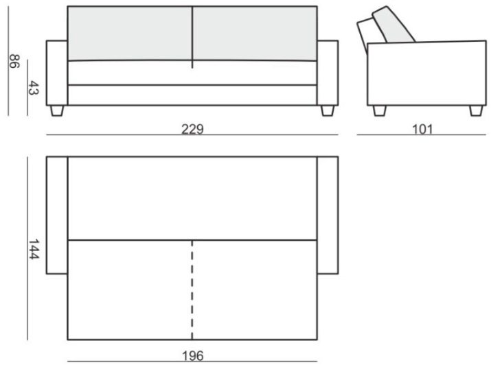 Jednocześnie szerokość blatu wynosi 60 cm. Jeśli rozkładana sofa będzie miała parametry jej koi, będzie wynosić 201 x 95 cm, a szerokość bloków będzie już miała kilka centymetrów szerokości.
