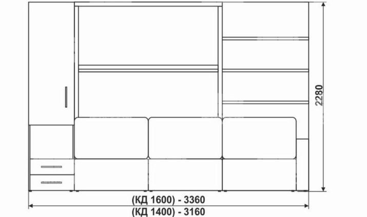 Meble te to konstrukcja składająca się z sofy wbudowanej w szafę. System transformacji w tym przypadku obejmuje składanie do przodu. W zależności od modelu produkt może mieć wsporniki i podłokietniki.