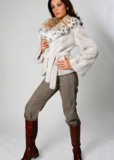 Kolejnym ważnym elementem efektownej kokardki jest czapka. Z białym płaszczem z norek możesz nosić czapkę z norek w tonie, a modele z kapturem pozwalają całkowicie porzucić nakrycie głowy. Młode dziewczyny mogą nosić czapkę lub beret z płaszczem z norek, ale model nie powinien być prosty, aby stać się godną ozdobą futra.