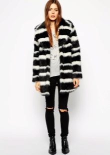 W tym sezonie projektanci często łączą dwa kolory. Świetnym rozwiązaniem jest czarno-białe futro. Dzisiaj projektanci oferują luksusowe modele z geometrycznymi chaotycznymi wzorami. Smukłe dziewczyny mogą wybrać biały futro z norek z poziomymi czarnymi paskami, a dla właścicieli o zaokrąglonych kształtach pionowy pasek jest idealny.