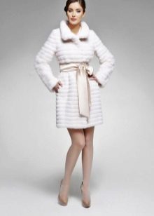 Dziewczęta z postacią typu „jabłko” również pasują do białego futra z norek, ale powinno być ze strzyżonym stosem. Do prowadzenia samochodu lepiej jest kupić model o małej długości, ponieważ długi płaszcz przeszkadza tylko w prowadzeniu samochodu.