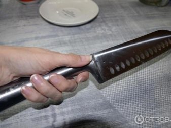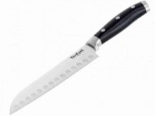 Osobno należy zauważyć inny ważny punkt - lekkość. Wydawałoby się, że nóż wykonany z niemieckiej stali powinien być ciężki i zwymiarowany, ale to wcale nie jest prawda.Przeciwnie, wysoka waga narzędzia jest oznaką niskiej jakości, ponieważ przy częstym używaniu ręka będzie bardzo zmęczona. Ani ostrze, ani uchwyt nie powinny być ciężkie, aby zapewnić wygodne cięcie produktów. Urządzenia Tefal są nie tylko lekkie, ale także wygodny ergonomiczny kształt z tworzywa sztucznego lub metaluktóry jest łatwy i wygodny do trzymania w dłoni. Nóż nie ślizga się.